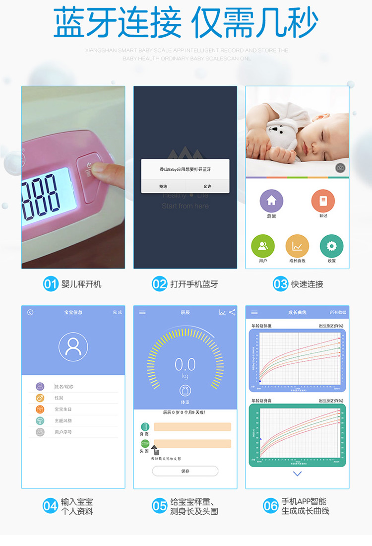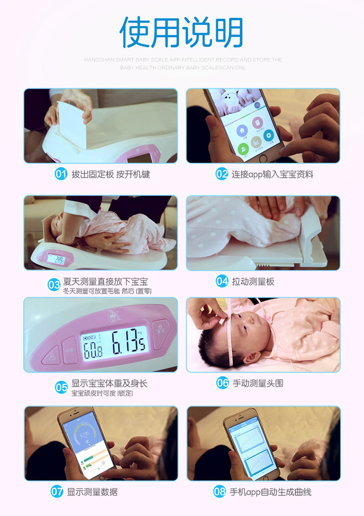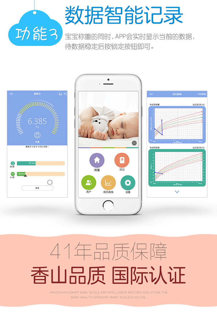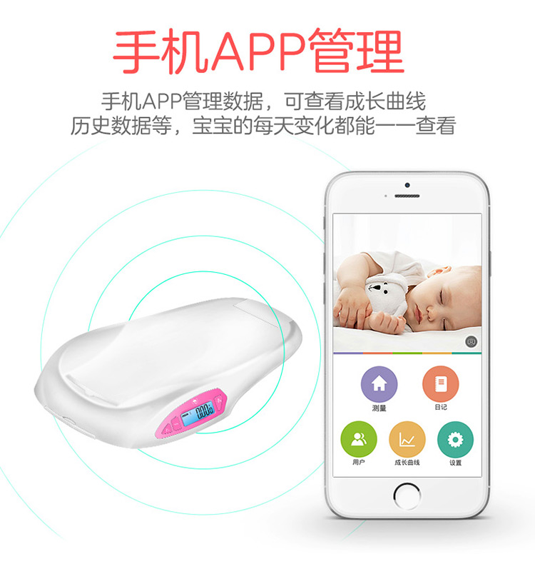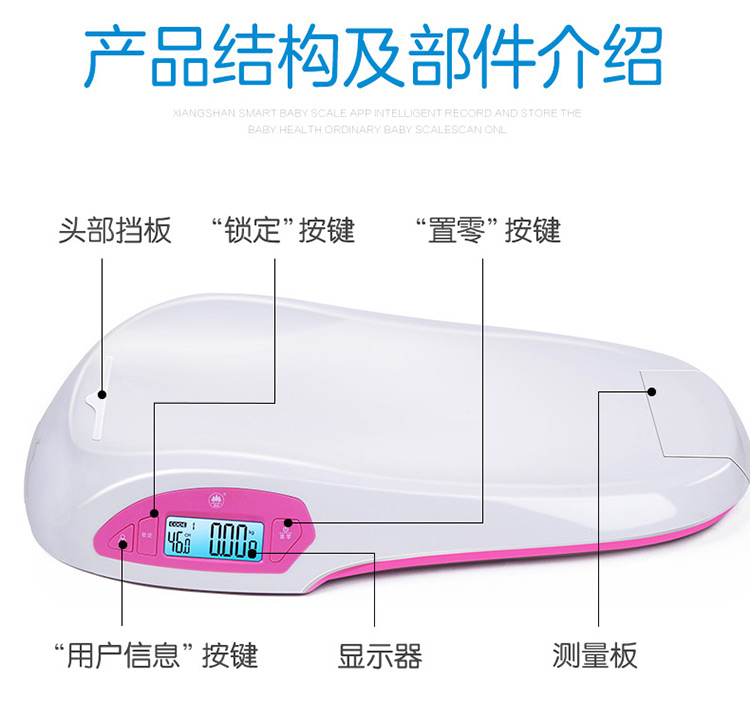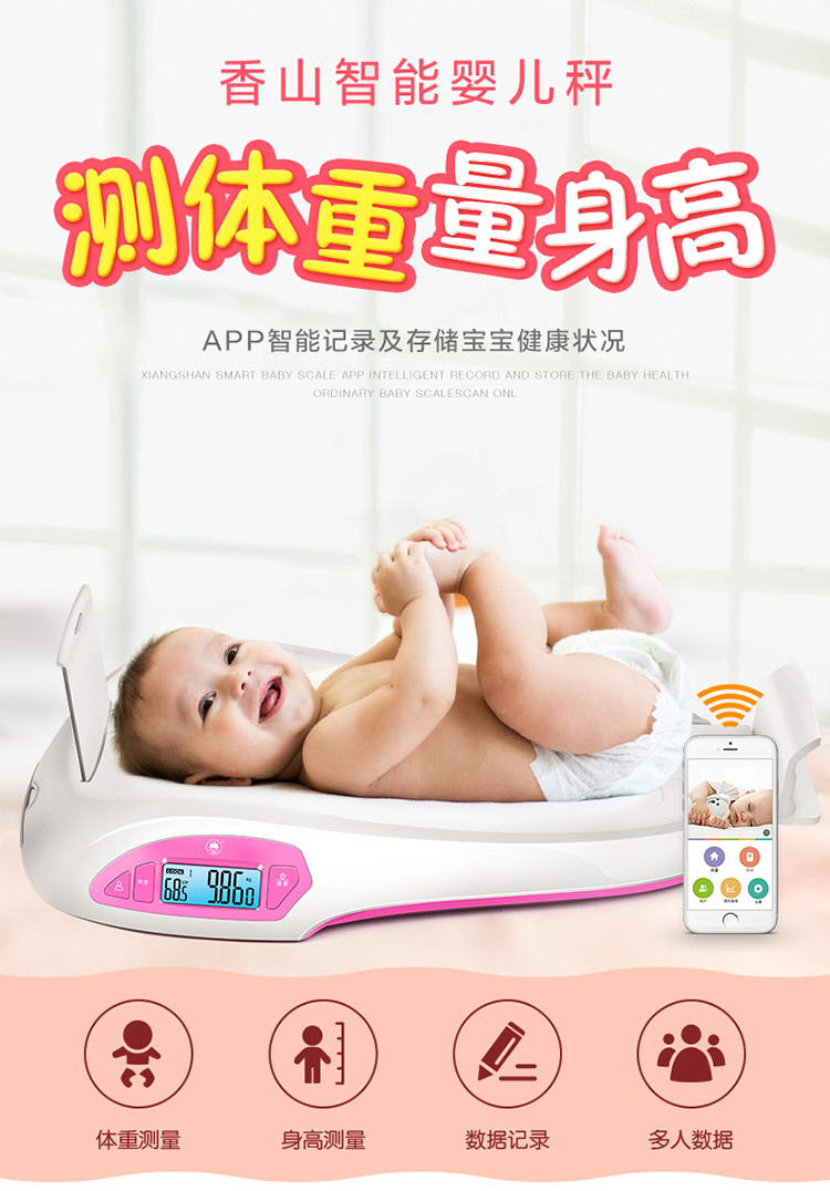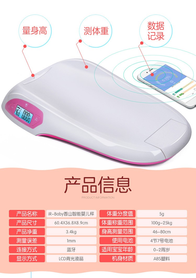 香山iR-Baby婴儿秤 电子秤 体重秤 智能婴幼儿秤可测身高 精准 宝宝成长秤 蓝牙传输app控制 礼盒装